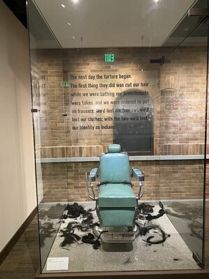 [뉴스M=마이클 오 기자] 가위 소리가 이토록 차갑고 섬뜩하게 들린 적은 없었다. 이층으로 향하는 계단에 발을 내딛자, 귀속을 파고드는 서늘한 소리다. 한 움큼은 됨직한 머리카락이 잘려 나가는 뭉툭하고도 날카로운 소리, 마치 비명 같다. 유리 벽 속에 진열된 이발소 의자 주변 아무렇게나 흩어진 머리카락과 내팽개쳐진 땋은 머리는 주검처럼 쓰러져있다.'머나먼 고향’(Away From Home)허드뮤지엄 전시관 ‘머나먼 고향’(Away From Home)’의 시작점이다. 원주민 기숙학교에 대한 참혹하고 잔인한 기록을 품고 있다. 안내문에
