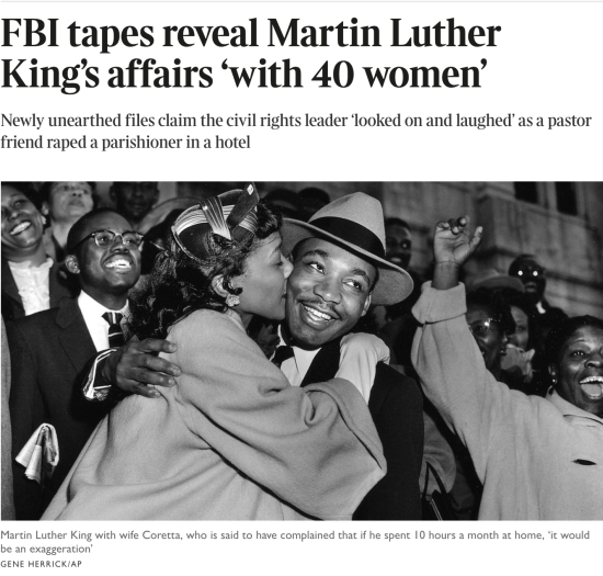 하지만, 고작 일부만 공개된 FBI 파일을 가지고 킹 목사가 강간을 일삼으며 외도를 즐겼다고 누가 확실히 이야기할 수 있을까? 킹 목사에 대해 우리는 얼마나 안다고 자신 있게 말할 수 있겠는가? 다시 말하지만, 확증은 아무것도 없다. 그럼에도 타인의 성생활에 대해 이랬다저랬다 말하는 사람들은 무엇을 원하는 것인가?