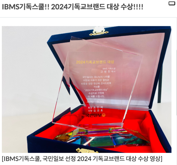 IBMS기독스쿨 홈페이지를 보면 2024년도 국민일보가 선정한 ‘기독교브랜드 대상’을 수상했다는 소개와 영상 등을 올려놓고 있다. 또한, 지난해 4월 27에는 IBMS기독스쿨 입시팀 주최로 입시전문가를 불러 ‘입시 전문 컨설팅’을 하는 등 주일성경학교라는 주장을 무색케하는 행보들이 곳곳에 존재했다.